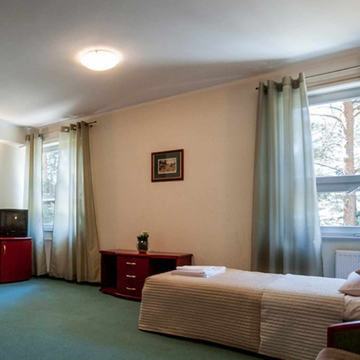 ZAKWATEROWANIE: Pokoje 3 -4 oraz jednen pokój studnio 7 osobowy z łazienkami. Teren ogrodzony w samym sercu lasu. Na terenie ośrodka znajdują się 4 duże sale oraz boisko do piłki nożnej i koszykówki.